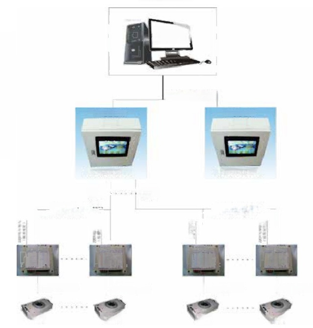 主要用于大型洁净房间,能够方便地实现现场分散控制和集中统一管理功能。可灵活控制 FFU 风机的启动、停止和调速,该控制 系统利用分区控制技术,解决了485驱动能力有限的问题,最 大可控制几千台 FFU。 控制系统包括以下三部分内容:
